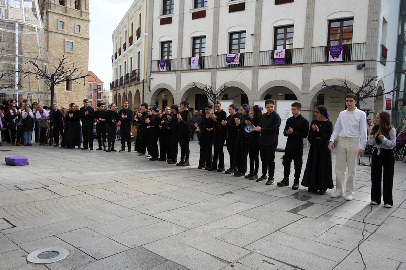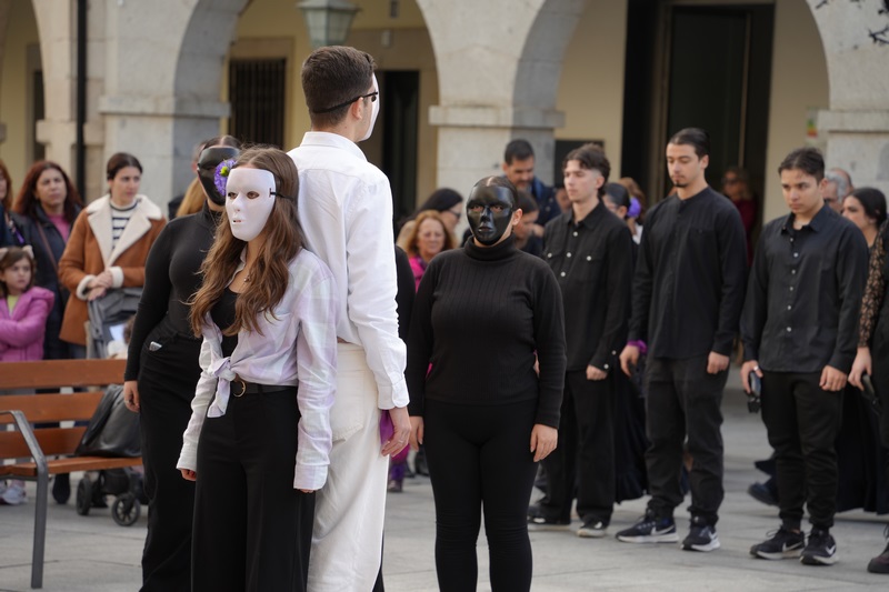 Este lunes 25 de noviembre se conmemora el Día Internacional para la Eliminación de la Violencia hacia las Mujeres. Por ello y bajo el título “Un billete para una nueva vida” 24 alumnos y alumnas del IES Puerta de la Serena, han interpretado esta performance basada en la adaptación de la novela “Alegría” del extremeño Miguel Ángel Carmona. Una representación que se ha llevado a cabo en la plaza de España después de la lectura de un manifiesto y el minuto de silencio por una nueva víctima en el día de ayer. Desde el año 2003 más de 1.279 mujeres han sido asesinadas a manos de sus parejas o exparejas y en lo que llevamos de año, 24 menores se han quedado huérfanos.