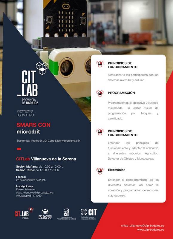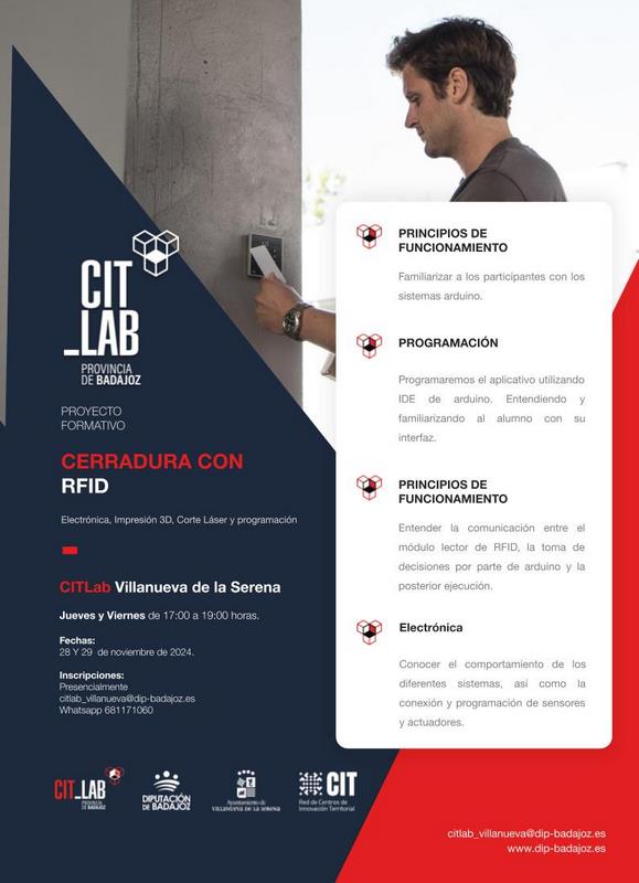 El CITLab de Villanueva de la Serena pone en marcha varios proyectos formativos relacionados con la tecnología, en concreto se tratan de “Smars con Micro:bit”, “Cerradura RFID con Arduino”, “Estación meteorológica con Arduino” e “Iniciación al Bordado Digital”. Unos cursos que destinados a mayores de 14 años que tengan conocimientos básicos de manejo de equipos informáticos.