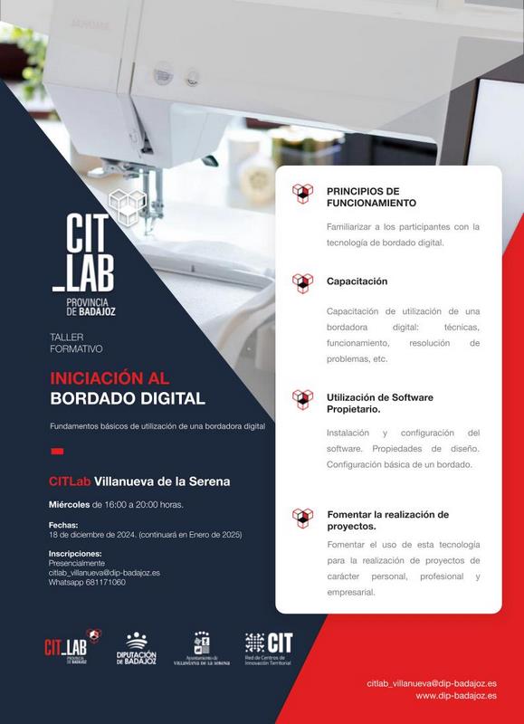 Las inscripciones pueden realizarse de forma presencial en el Palacio Consistorial La Jabonera, mediante whatsapp en el teléfono 681171060 o a través del email: citlab_villanueva@dip-badajoz.es.