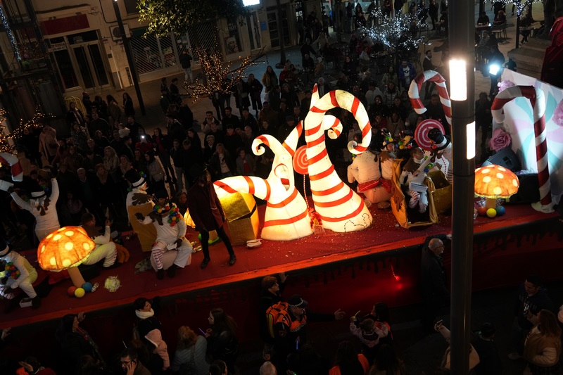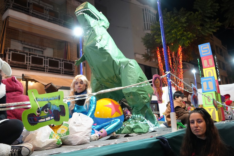 Como cada año, la temática es variada y no faltan escenas y personajes que llenan de ilusión a los pequeños, en concreto, la asociación ASDIVI participa con la carroza “Charly y la fábrica de chocolate”, el CEIP Conquistadores “Coco”, el CEIP Virgen del Pilar “La Estrella”, el CEIP Miguel de Cervantes “Búfalo Kids”, Candyblue “Fórmula 1!”, la asociación Black Stores “Toy Story”, el CEIP Cruz del Río “Magia Polar”, el club 600 La Serena “El Grinch”, el colegio San José con la carroza “Lotería de Navidad”, el Centro Hípico La Barca con “Guardianes de la Galaxia”, la asociación APOYAT “Mitología griega”, el CEIP Santiago Apóstol “Del revés”, a los que se suman los beduinos nazarenos y las tres carrozas de Melchor, Gaspar y Baltasar a cargo del Ayuntamiento.