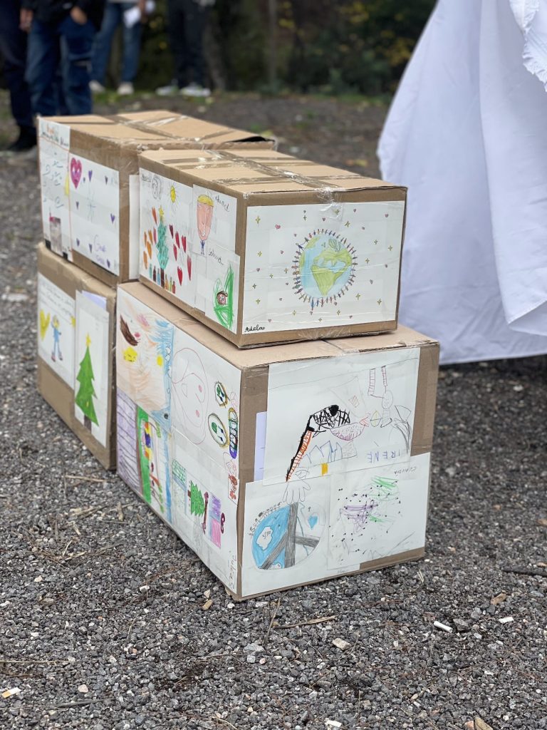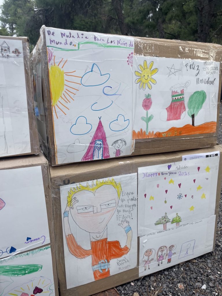 Las cajas que forman parte del espectáculo, están decoradas con los dibujos de los pequeños que han participado en los talleres navideños que finalizaron la pasada semana. En ellos, además de dibujos, hay mensajes de apoyo y ánimo para toda la población.