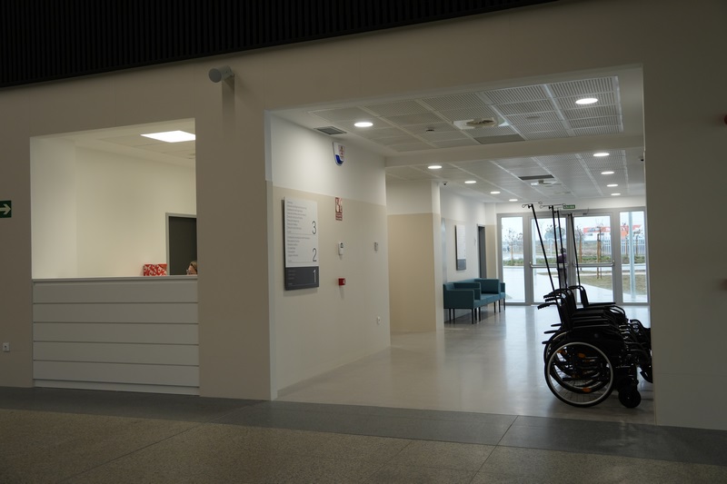 Este primer módulo consta de un espacioso vestíbulo a través del cual el usuario transita hacia las distintas zonas. Ahora solo en fase abierta, aunque en un futuro será también el nexo entre las ocho zonas en las que estará dividido el hospital, tanto la zona que ahora ya está funcionando como la futura con la zona de hospitalización, áreas internas y técnicas; entre las que están la zona quirúrgica y las urgencias.