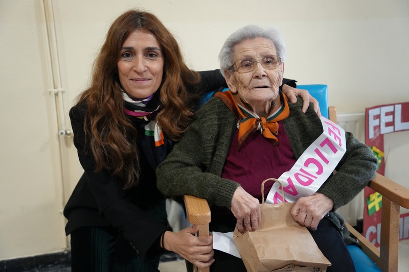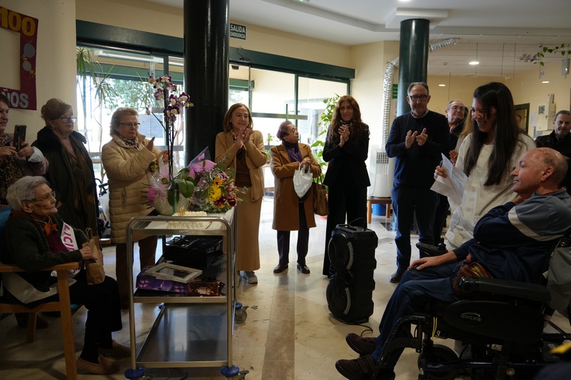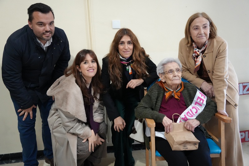 Feliz y acompañada de su familia, la villanovense Ángela León, cumple este martes 4 de febrero 100 años. La alcaldesa Ana Belén Fernández la ha visitado en la residencia Felipe Trigo en la que reside. Ahí, ha tenido ocasión de felicitarla en persona y ha mantenido una charla tanto con ella como con sus familiares, en la que les ha contado como es y ha sido su día a día.