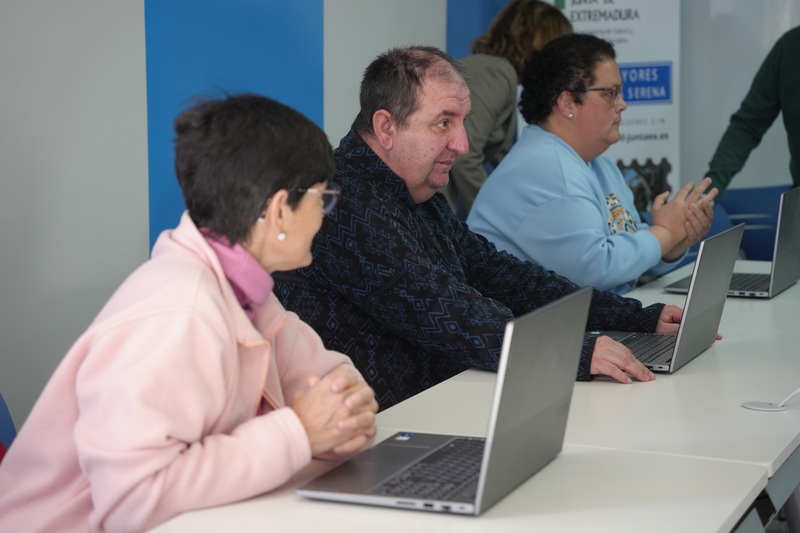 La alcaldesa Ana Belén Fernández visita este miércoles 12 el centro de mayores Conquistadores. En él, un grupo de mayores, pertenecientes a la asociación de voluntarios informáticos (AVIMEX) imparten clases todos los lunes a personas con discapacidad del centro Inclusives de la ciudad. En concreto, las clases se imparten en grupos de seis personas, aunque en esta ocasión se ha reunido con los doce usuarios de este servicio; con los que ha tenido ocasión de hablar y conocer cómo van avanzando en el manejo de todo lo relacionado con la informática.