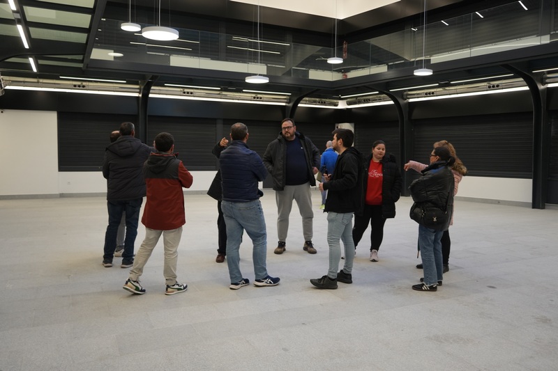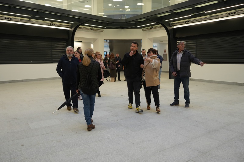 Una vez que la alcaldesa ha explicado los distintos detalles del edificio, los comerciantes han visitado junto a la alcaldesa el nuevo mercado. Todo ello con el fin de que sean los primeros en visitarlo y ver cómo es el edificio por dentro, sus distintos puestos y dependencias.  En concreto, son 19 los puestos que hay en la planta baja y otros 8 en la planta alta, en la que se combinan locales con quioscos de restauración, ofreciendo la posibilidad de que el cliente que puede hacer la compra y quedarse a tomar un aperitivo. Los mostradores de atención están dando a la calle, de forma que el cliente pueda relacionarse directamente con ellos, permitiendo una sensación de plaza de mercado abierta, directa y cercana con la trama urbana, integrándose lo que hay dentro con lo que hay fuera. En el centro del nuevo mercado hay un lucernario cenital, lo que posibilita que haya luz natural en cualquier espacio del edificio, lo que le hace más abierto y luminoso.