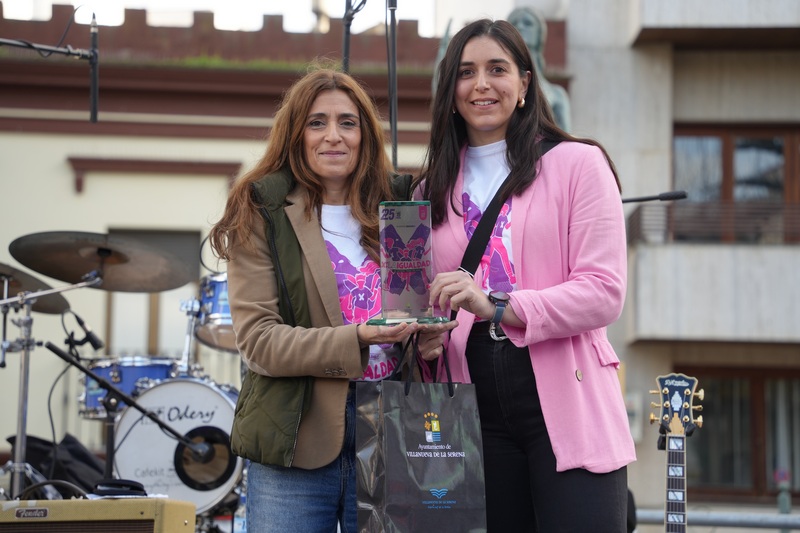 Tras la carrera, se procedió a la entrega de reconocimientos que en esta ocasión han recaído en Luisa de la Cruz como persona de mayor edad que participa y en la Mancomunidad Integral La Serena-Vegas Altas como grupo más numeroso. Por otra parte, también se entregaron reconocimientos a la madrina, Alicia González y al padrino Manuel Jardón, así como el cheque solidario destinado a la Asociación de Personas con Diabetes Don Benito Villanueva de la Serena.