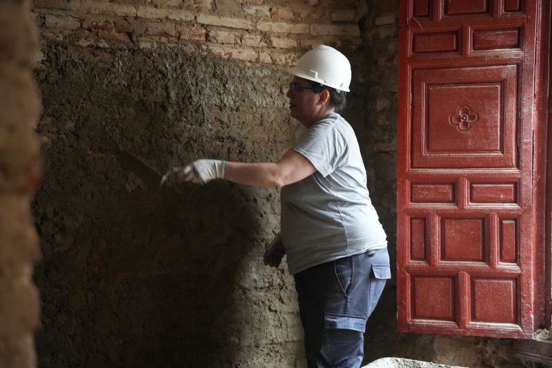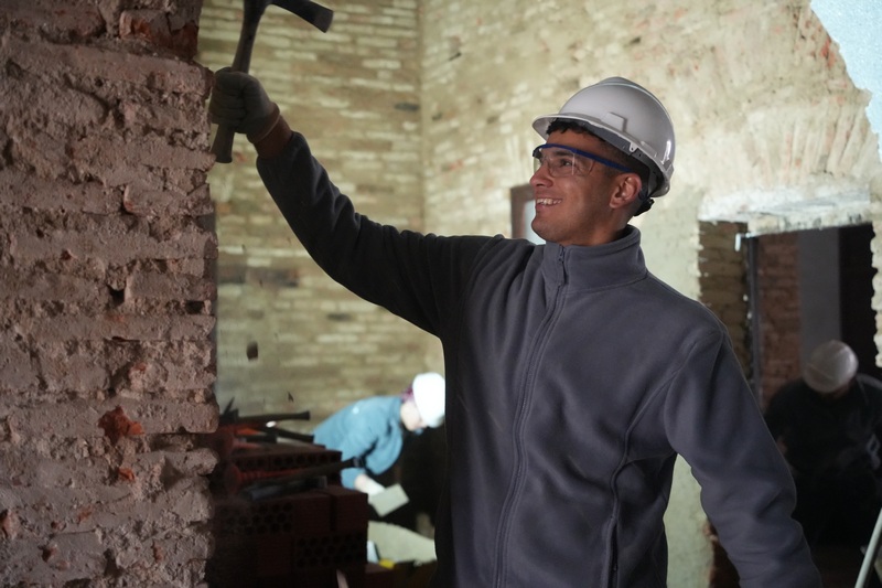 En estos momentos los trabajos que se están llevando a cabo en la especialidad de albañilería son las de picar las paredes para sanearles, preparar las zonas para posteriormente poder realizar la instalación eléctrica, el saneamiento, entre otras acciones.