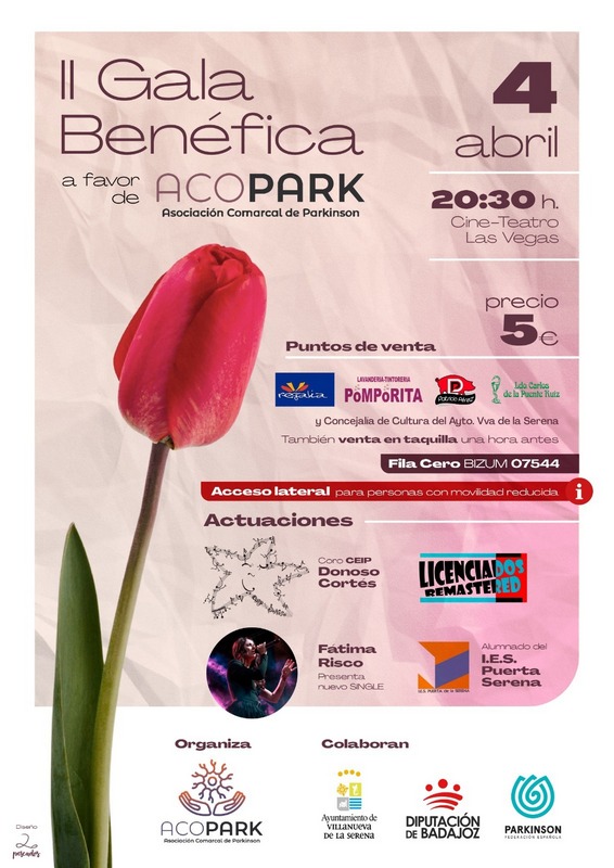 Una semana de actividades que comenzarán, tal como explica Inés María Rodríguez, vicepresidenta de ACOPARK, con la gala solidaria que se llevará a cabo el 4 de abril en el teatro Las Vegas a partir de las 20:30 horas y que acogerá diferentes actuaciones musicales y artísticas a cargo de la cantante Fátima Risco, del coro del CEIP Donoso Cortés, el grupo musical Licenciados remastered así como los alumnos del IES Puerta Serena.