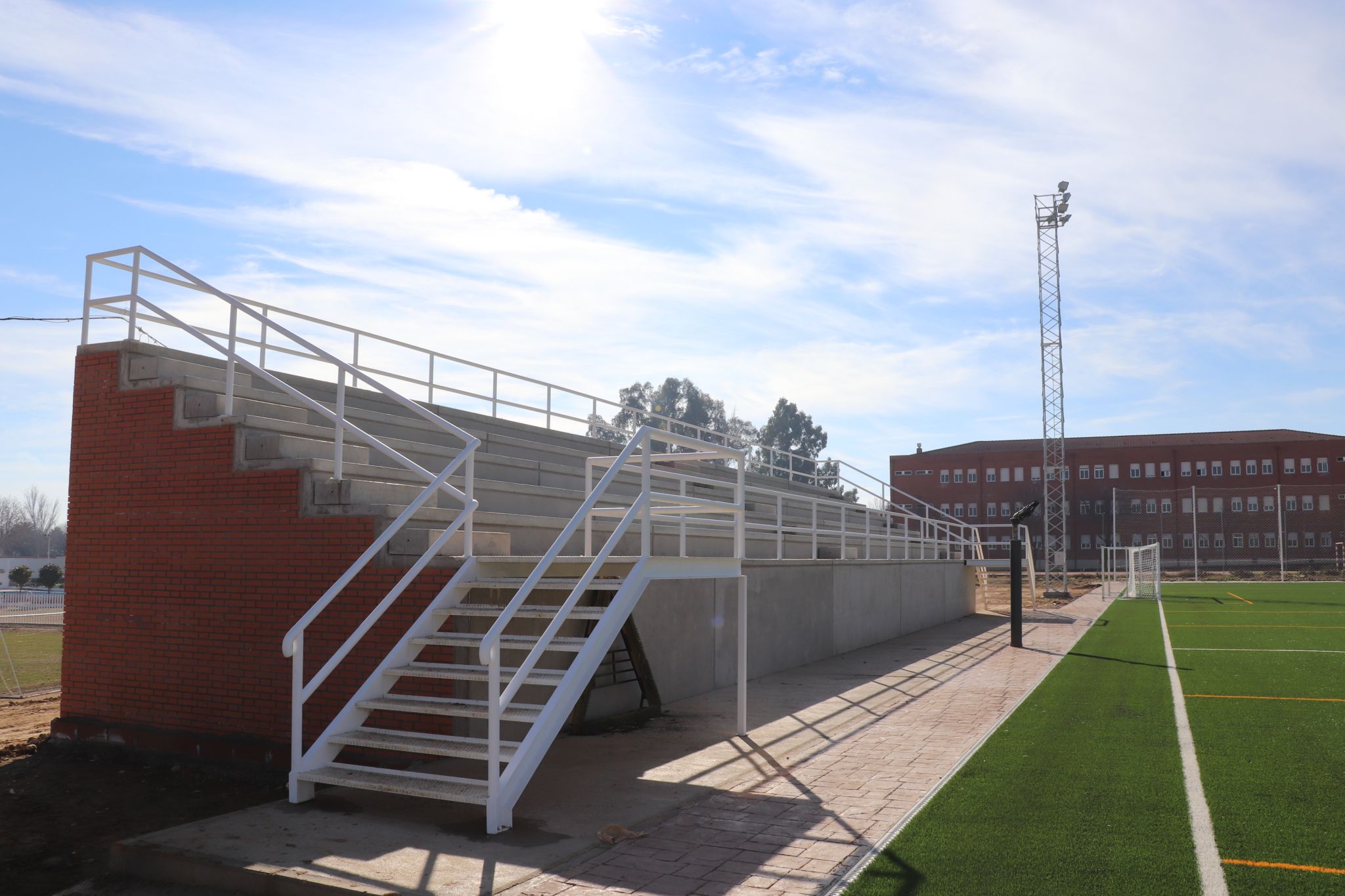 Por lo que respecta al campo de césped artificial de la avenida de Europa, el primero de los dos que se construyó, la actuación prevista es la construcción de un graderío con una capacidad para unos 360 espectadores. Un módulo de gradas que será en cuatro niveles, además la parte baja de la edificación se destinará a la creación de cuatro almacenes con una superficie de unos 45 metros cuadrados cada uno de ellos.