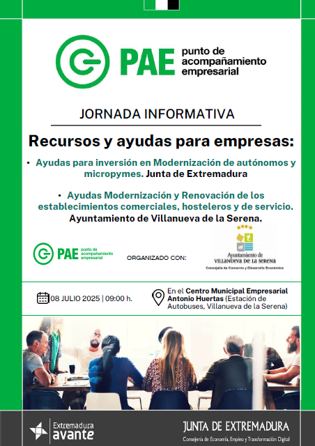 Una jornada donde se explicarán las ayudas para inversión en modernización de autónomos y micropymes de la Junta de Extremadura a las que se suman las ayudas de modernización y renovación de los establecimientos comerciales, hosteleros y de servicio que ha puesto en marcha el Ayuntamiento.