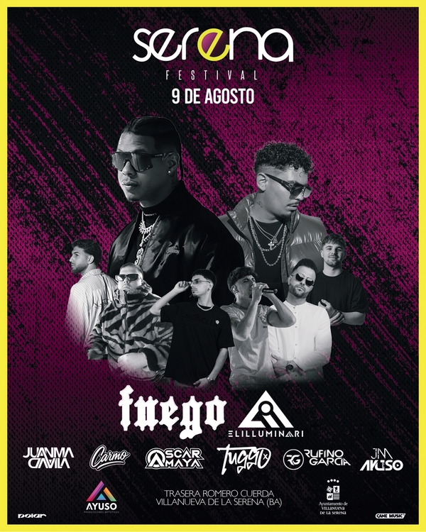 Un año más, desde la concejalía de Juventud se lleva a cabo un evento musical que congrega a una multitud de jóvenes de la ciudad así como de alrededores. Se trata del Serena Festival que alcanza su séptima edición. Así lo ha dado a conocer Ángela Atanasio, concejala de Juventud quien destaca que este festival contará con la actuación de los Djs Rufino García, J.M. Ayuso, Óscar Omaya, Juanma Dávila, Carmo y Tuggo al que se suma el artista internacional, cabeza de cartel, “Fuego”.
