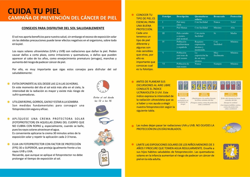 Como viene siendo habitual, se distribuirá material informativo con consejos de fotoprotección que se distribuirán en la piscina, centros de mayores, instalaciones deportivas, entre otras. Se trata de un cartel informativo con recomendaciones básicas, un folleto para la población en general y otro con recomendaciones para la protección solar infantil.