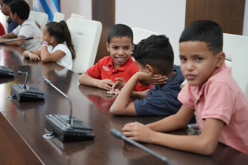 La alcaldesa Ana Belén Fernández recibe a un total de 10 niños y niñas saharauis que participan este año en el proyecto “Vacaciones en paz” que organiza un año más, la Asociación de Amigos del Pueblo Saharaui Vegas Altas-La Serena.
