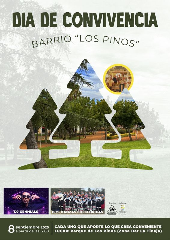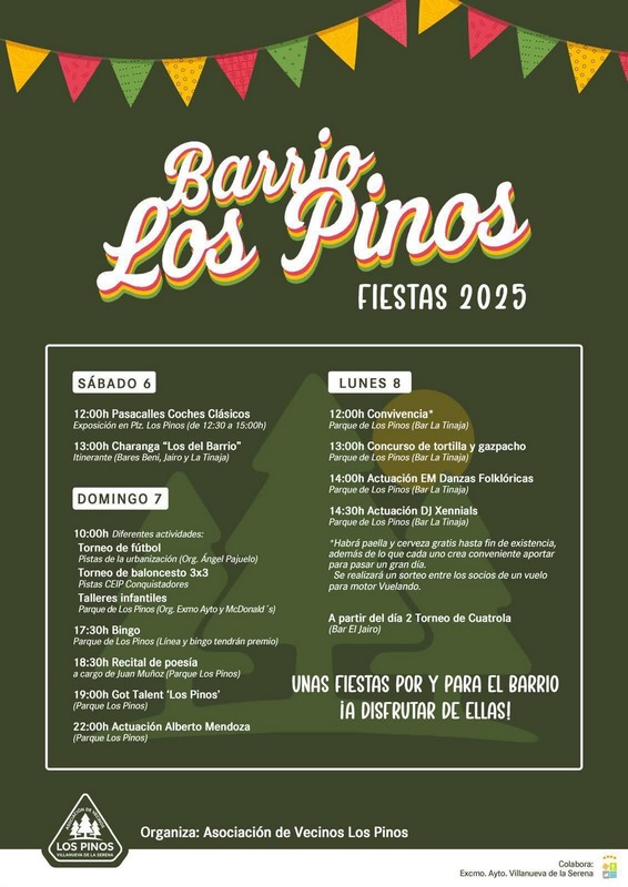 Por la tarde habrá un bingo, un recital de poesía, got talent “Los Pinos” para disfrutar posteriormente de la actuación musical de Alberto Mendoza.