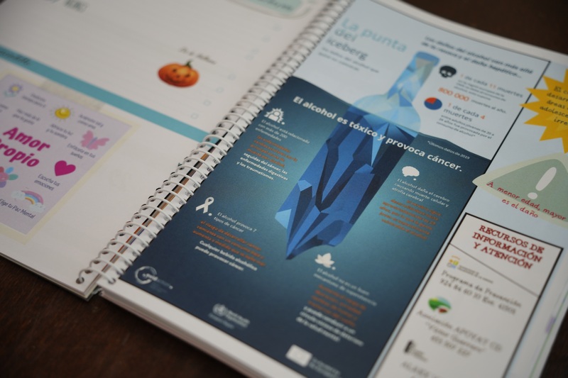 En estas agendas los escolares visualizan campañas de concienciación y prevención sobre salud, píldoras informativas y diversos mensajes con el objetivo de prevenir conductas adictivas y fomentar un estilo de vida saludable.
