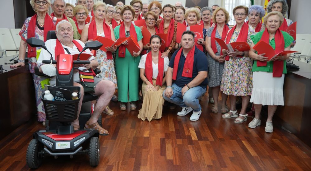 La alcaldesa Ana Belén Fernández ha entregado a los 34 componentes del Coro de Mayores de Conquistadores las bufandas que llevan siempre en sus actuaciones; así como las carpetas donde llevan las partituras de las distintas composiciones que interpretan. De esta forma, renuevan su imagen para las actuaciones que a lo largo del año llevan a cabo.