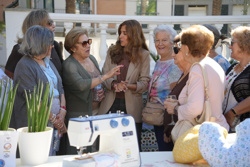 Además, la alcaldesa Ana Belén Fernández hace entrega de una máquina de coser a las voluntarias de AVIMEX del Centro de Mayores de Conquistadores que tejen los “corazones solidarios”