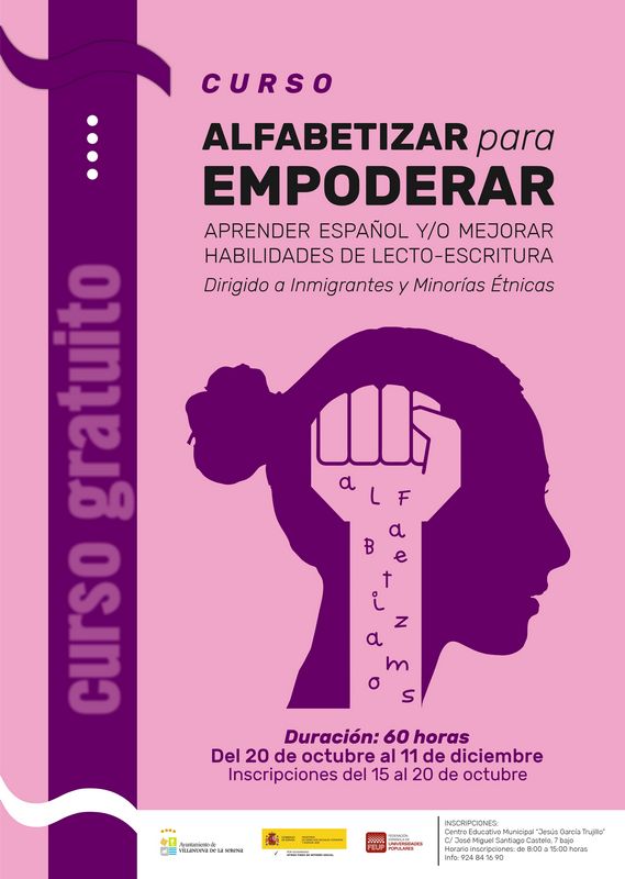 La Universidad Popular oferta un curso para aprender castellano y mejorar las habilidades de lectoescritura denominado “Curso de alfabetizar para empoderar”. Así lo ha dado a conocer la concejala de Universidad Popular Ángela Atanasio quien destaca que se trata de una formación destinada a personas inmigrantes, minorías étnicas o cualquier persona que necesite aprender la lengua española o mejorar sus habilidades de lectoescritura.