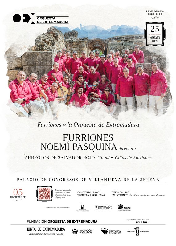 Continuará el 5 de diciembre, con el concierto más popular destinado a todos los públicos y dirigido por Noemí Pasquina en el que colaborará interpretando con el grupo musical extremeño Furriones quienes, para celebrar su décimo aniversario, ofrecen su variado y divertido repertorio dando un valiente salto al campo sinfónico.