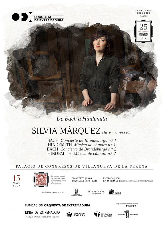 Los conciertos finalizarán en mayo, a través de Silvia Márquez, que interpretará el clave a la vez que se hará cargo de la dirección de orquesta afrontando un reto musical saltando de los conciertos de Brandemburgo de Johann Sebastián Bach a la música de cámara de Paul Hindemith.