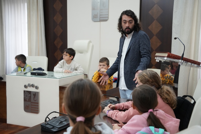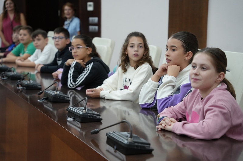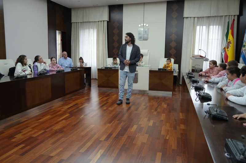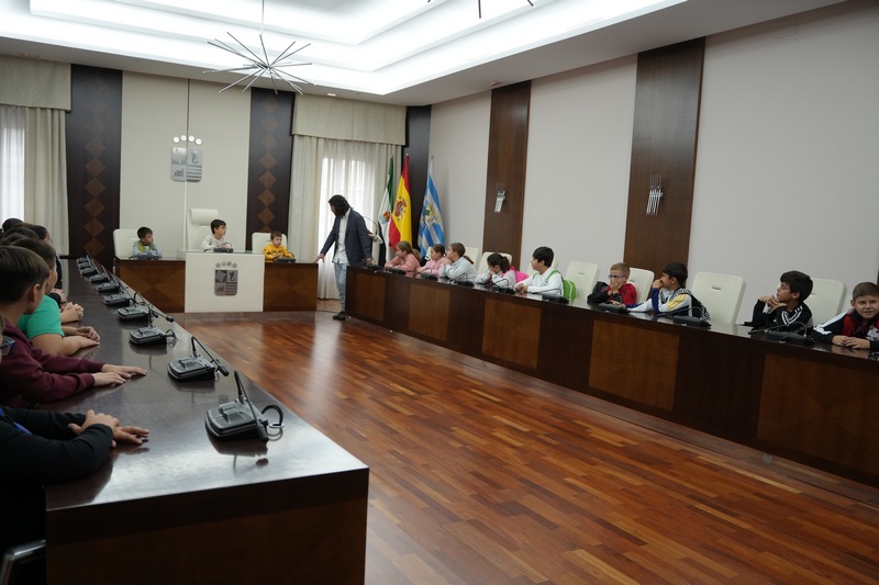 En su visita, tienen ocasión de conocer el Ayuntamiento, el salón de plenos donde el concejal de Educación Arturo García les ha recibido y ha mantenido una charla con ellos donde han podido preguntar aquellas cuestiones que les resultaban curiosas.