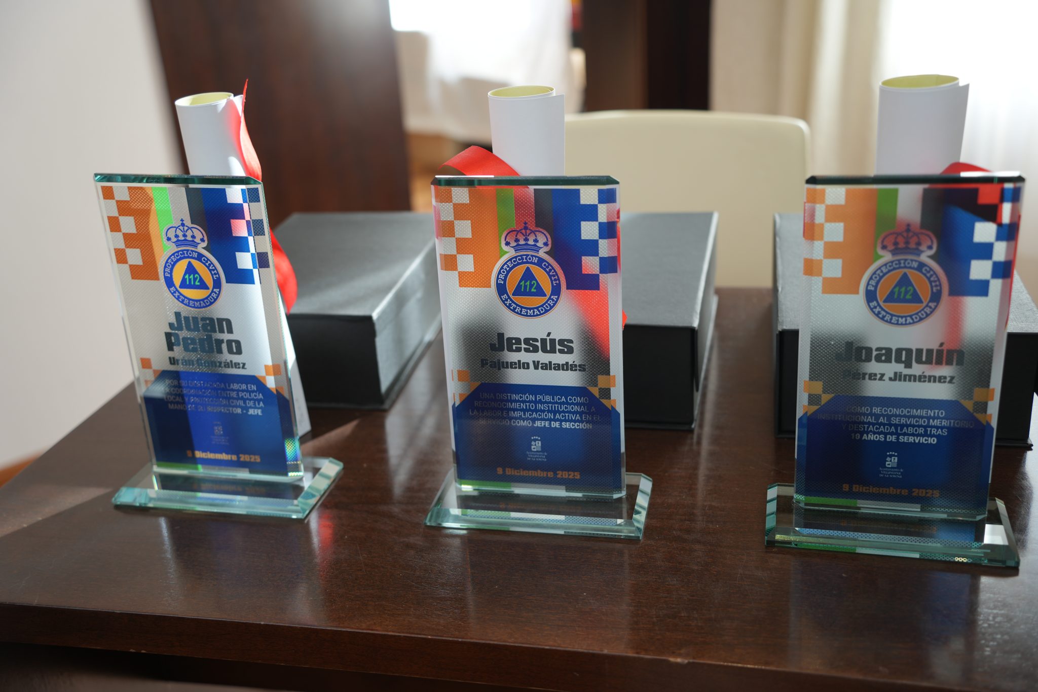 En lo que se refiere a las distinciones, son tres las entregadas en este Día de la Protección Civil, se ha entregado a Jesús Pajuelo Valadés, jefe de sección, una distinción pública como reconocimiento institucional a la destacada labor e implicación activa en el servicio.