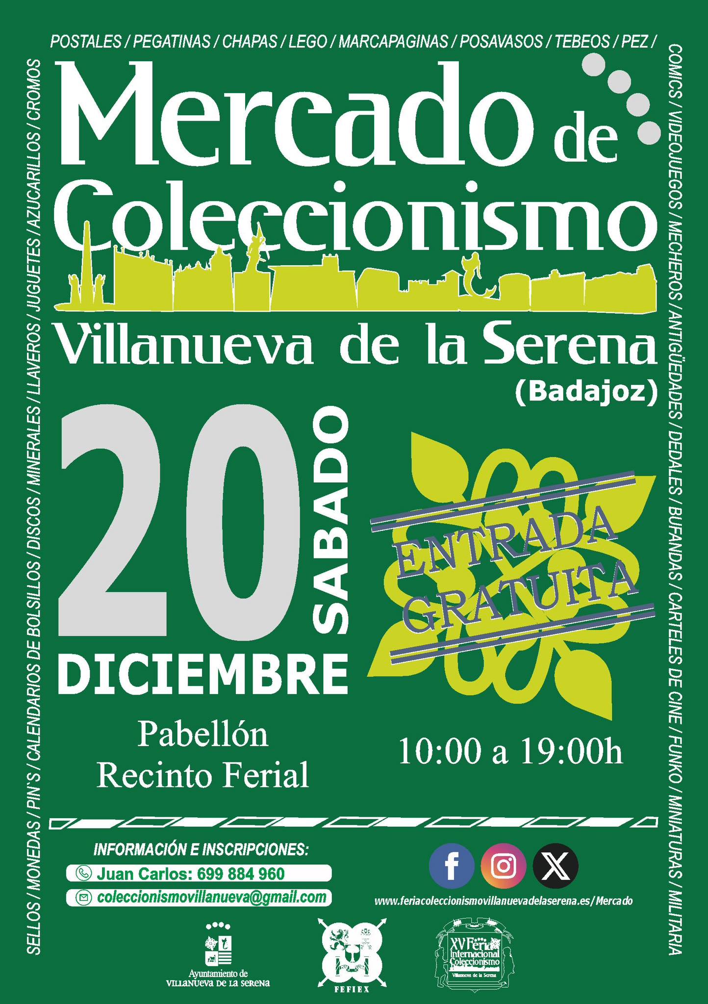 Los interesados en participar y los que deseen estar informados de todas las novedades pueden seguirlas a través de la página web www.feriacoleccionismovillanuevadelaserena.es/Mercado o a través de sus redes sociales.