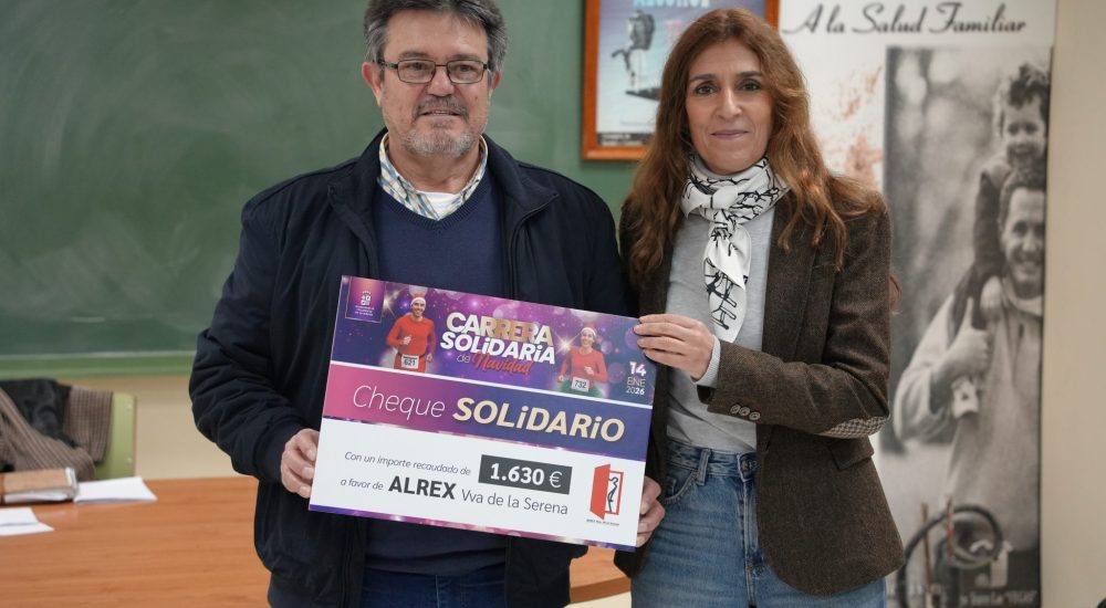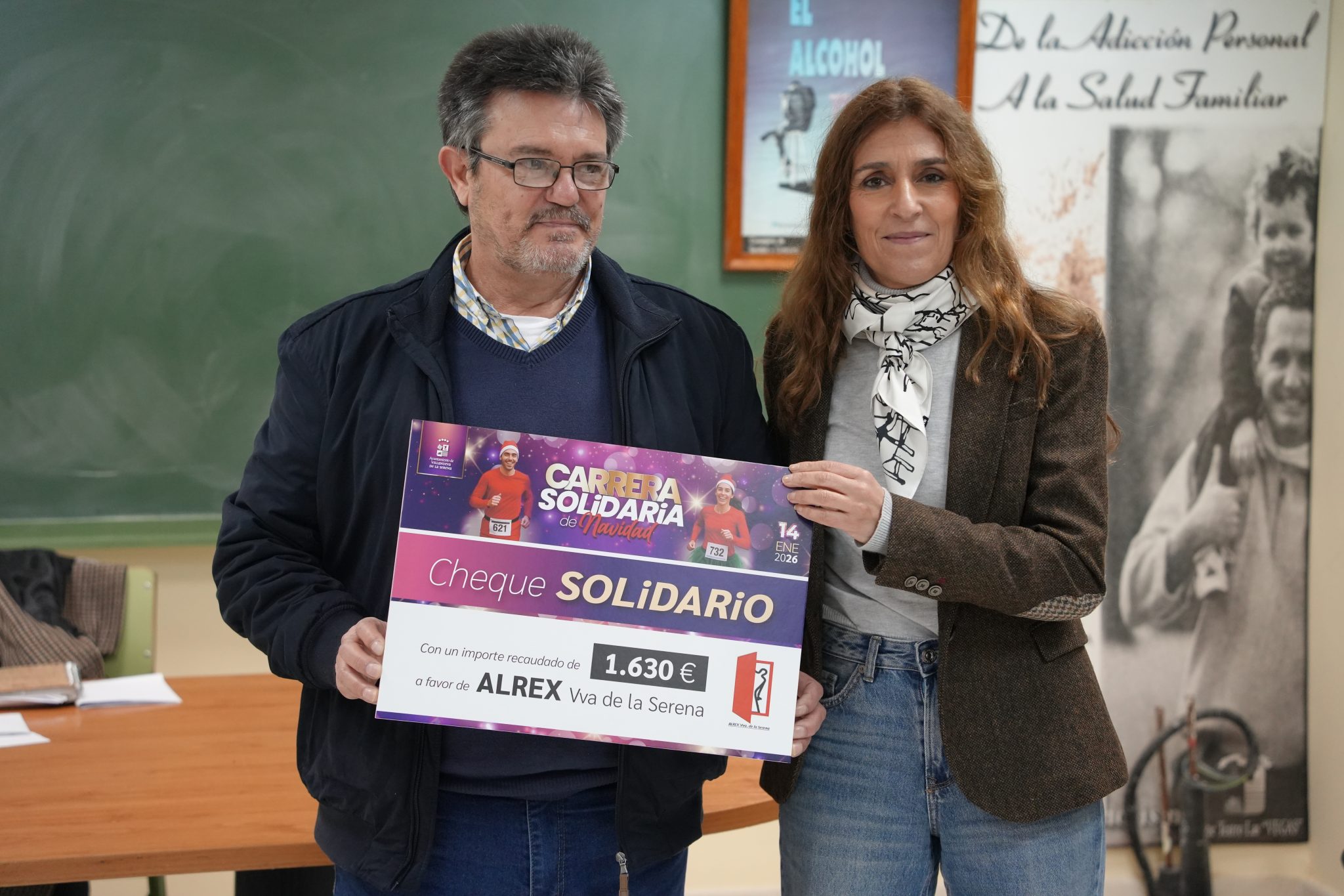 La alcaldesa Ana Belén Fernández ha entregado al presidente de Alrex Villanueva, Juan José Maldonado, del cheque solidario de 1.630 euros recaudados en la décimo cuarta Carrera Solidaria de Navidad, celebrada el pasado 24 de diciembre y en la que participaron 800 corredores. La alcaldesa ha subrayado la importante labor que desde Alrex se lleva a cabo desde hace años.
