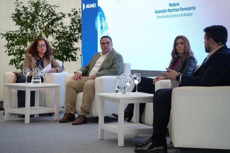 “La digitalización del ciclo del agua hecha realidad” es un evento organizado por Aquanex, El Periódico de Extremadura y La Crónica de Badajoz que se celebra en el palacio de congresos y que está estructurada en dos partes, en primer lugar, una entrevista a Asier Cumbreño director de Operaciones de Aquanex, y, posteriormente, una mesa redonda en el que intervienen la alcaldesa Ana Belén Fernández, Javier Sánchez Romero, director ejecutivo de Aquanex; Víctor Jiménez, presidente de la Mancomunidad de Vegas Altas y del Consorcio Vegas Altas La Serena-PDTEX.
