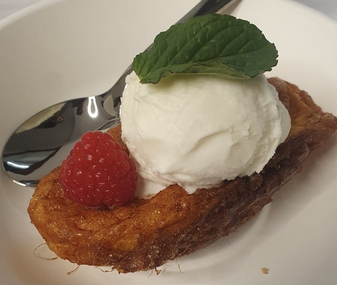 En concreto, sus propuestas han sido una tortilla de patatas y cardillo con majado esparragao, tortilla de queso curado y una torrija de patata con helado de nata. Todo ello acompañado por varios vinos extremeños.