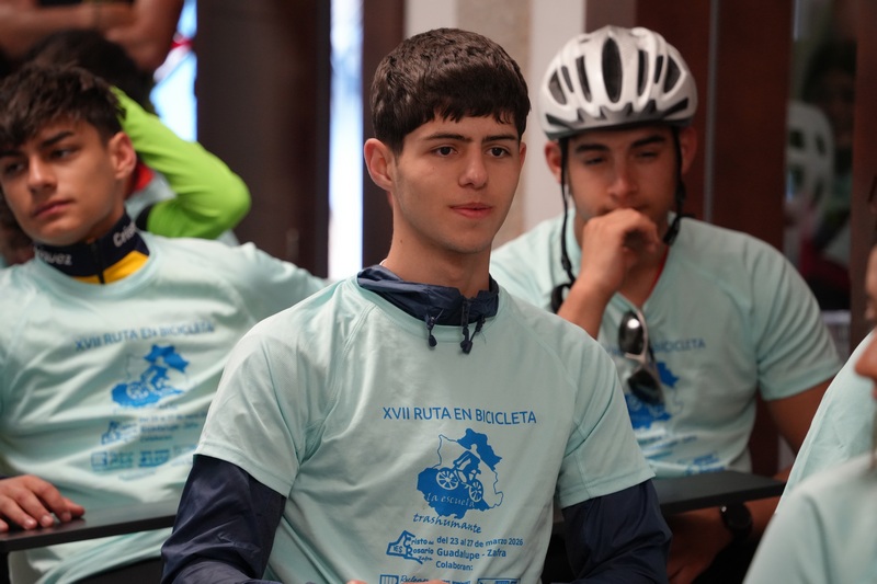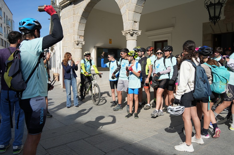 La ruta en Bicicleta de la Escuela Trashumante hace parada en Villanueva de la Serena. Se trata de medio centenar de estudiantes ciclistas de los institutos de Zafra, que llevan a cabo una ruta que transcurre por vías pecuarias, caminos que han formado parte de la trashumancia, pasando, además, por diferentes localidades.