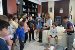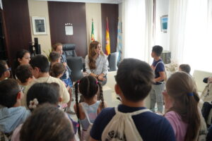 A estos alumnos los ha recibido la alcaldesa Ana Belén Fernández que ha compartido con ellos una charla. En ella les ha explicado un poco qué es el ayuntamiento, quién trabaja en él, y qué es el salón de plenos. Los alumnos han compartido con ellas sus gustos, le ha hecho algunas reivindicaciones y le han contado cuáles son los parques que más le gustan de la ciudad.