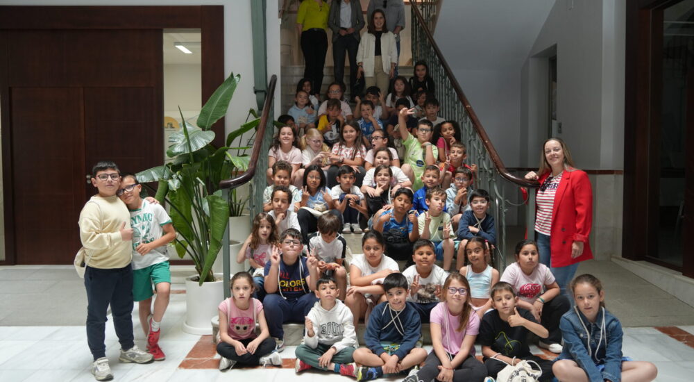 Un total de 50 alumnos del curso de 2º de primaria del CEIP Santiago Apóstol han visitado esta mañana el Ayuntamiento para conocer de cerca el funcionamiento del mismo. Son los alumnos de las dos clases de este colegio acompañados de sus maestros.
