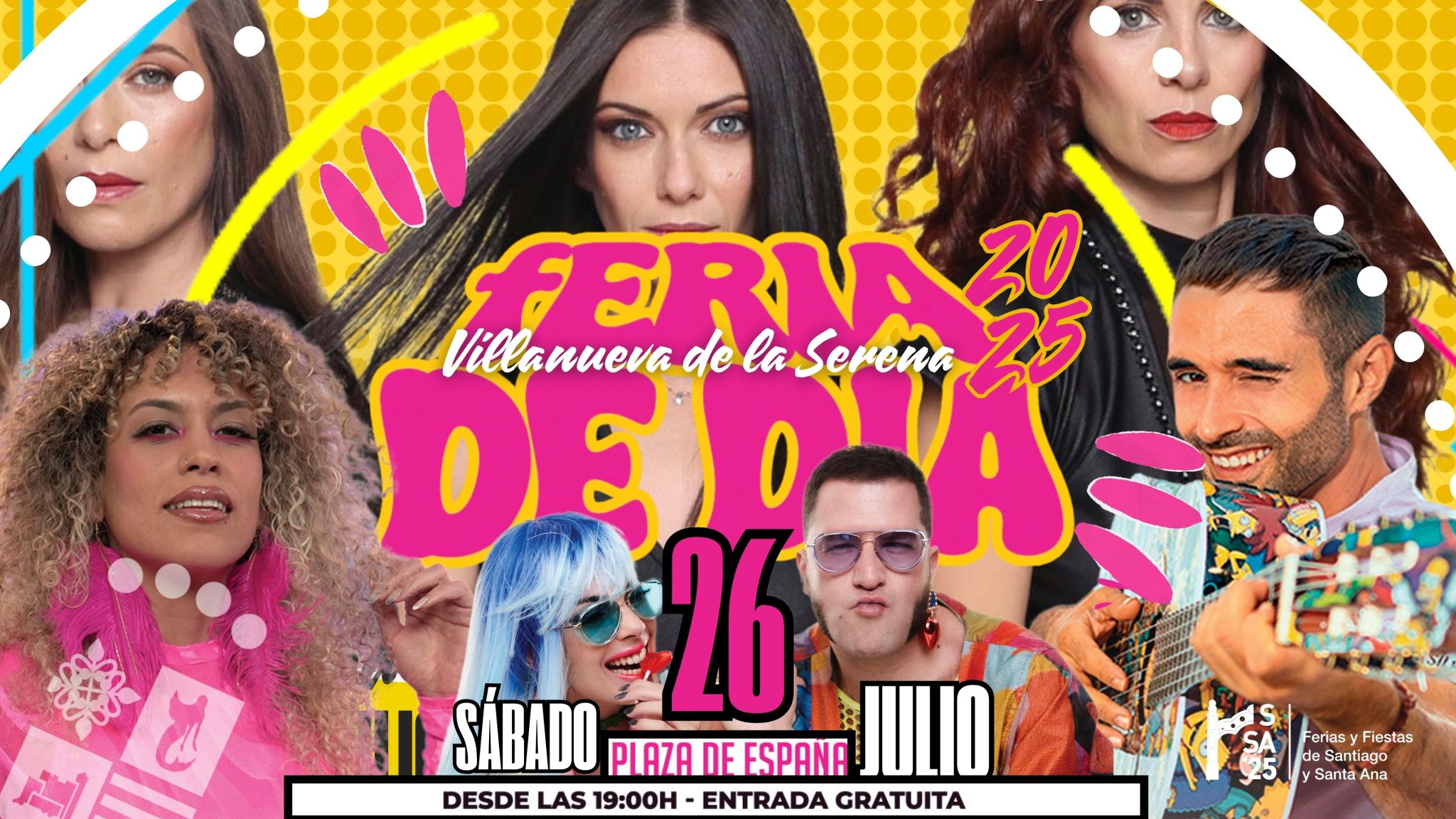 Prepárate para vivir una FERIA DE DÍA inolvidable desde las 19:00h en la Plaza de España con un cartelazo lleno de ritmo, humor y nostalgia: